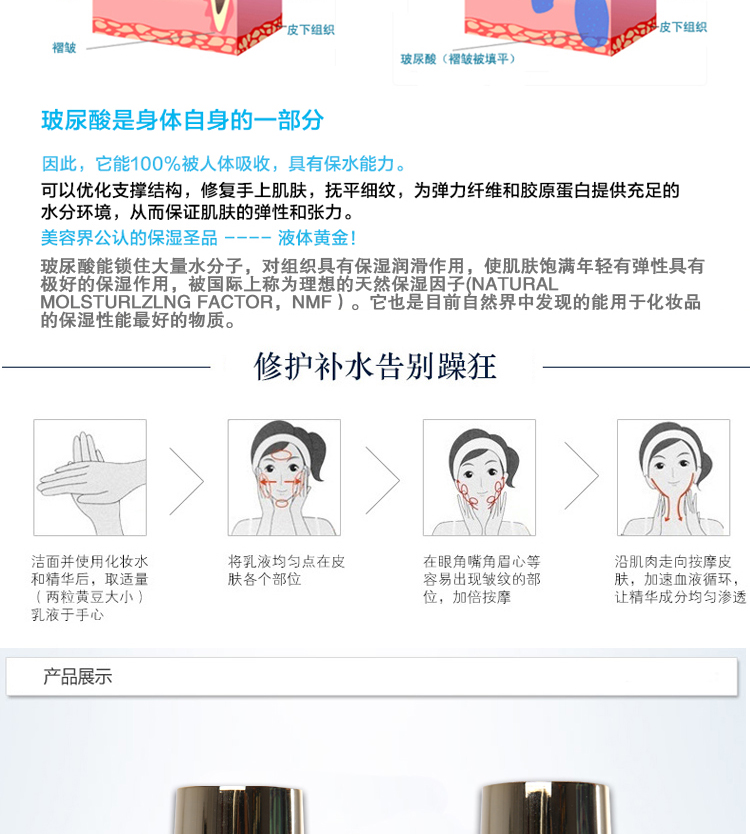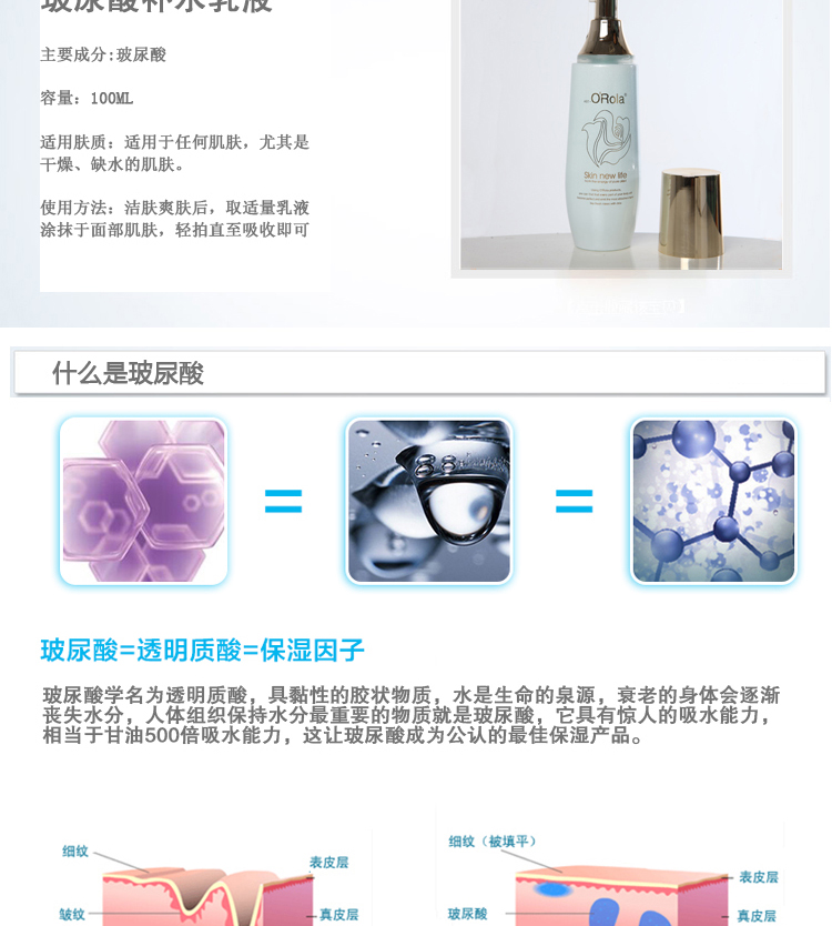 奧瑞拉玻尿酸補(bǔ)水乳液產(chǎn)品功效: